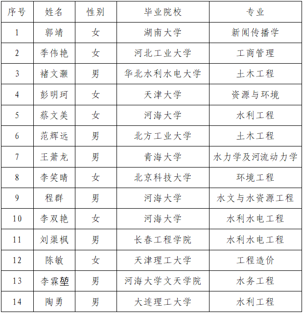 根據有關規定,現將中國水利水電建設工程咨詢渤海有限公司2025年度春季公開招聘擬聘人員名單公示如下: