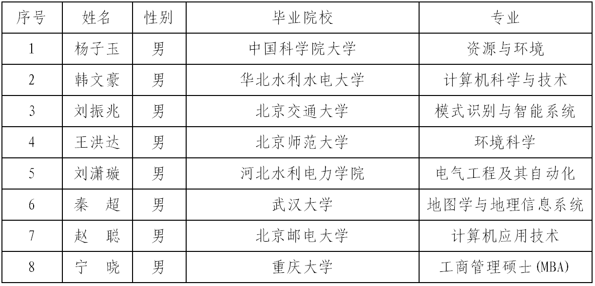 根據有關要求,現將中國南水北調集團水網智慧科技有限公司2025年度春季公開招聘擬聘人員名單公示如下: