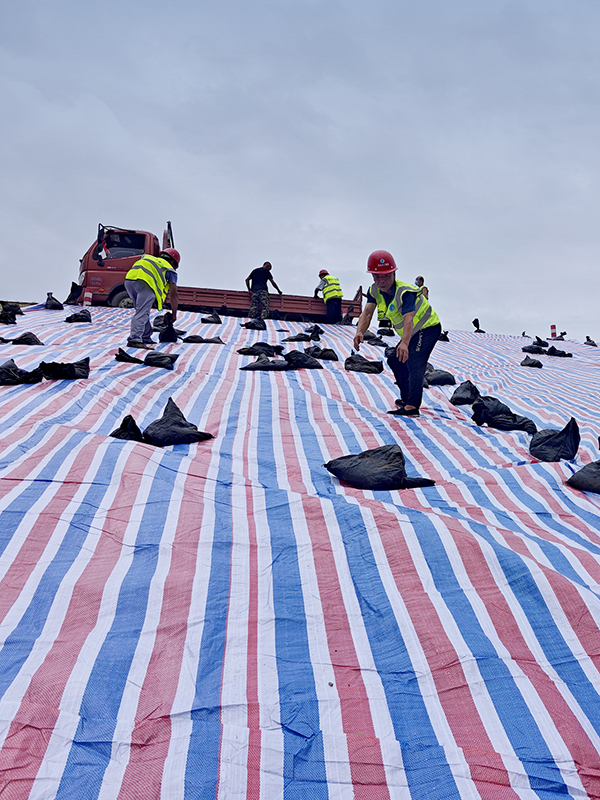 鋪設(shè)苫蓋彩條布 防止雨水浸泡渠道邊坡